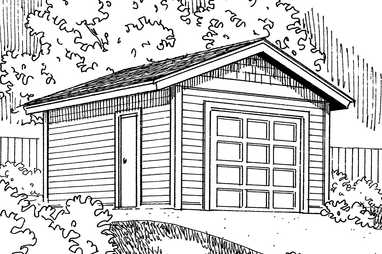 This traditional garage plan can house one car. The door on this design is 8' wide and 8' tall.